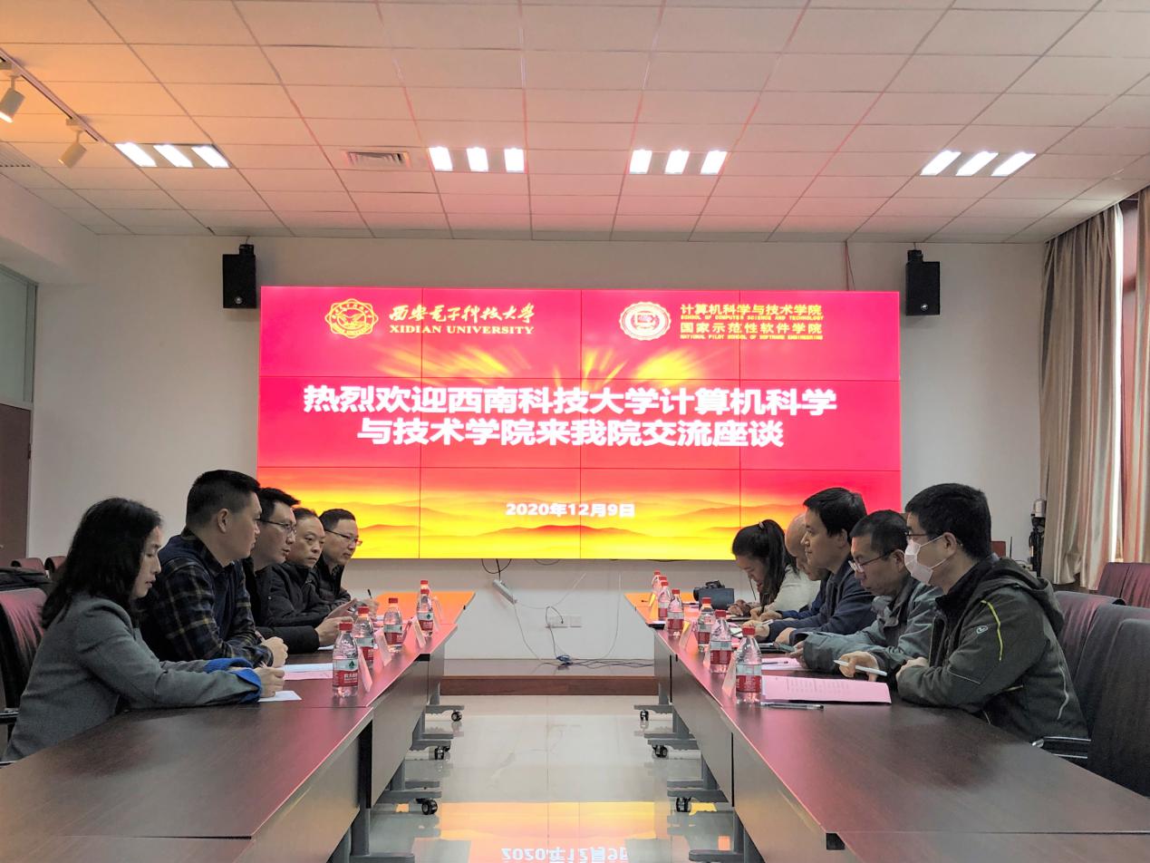 (通讯员 齐富 贠琳红)2020年12月9日上午,西南科技大学永利yl23411副经理赵旭剑一行来公司调研,双方就特色化示范性软件公司建设、本科公司产品和工程专业认证等工作进行座谈交流。公司副经理宋胜利、嵌入式计算技术研究所所长万波、网络工程系主任权义宁、软件工程系副主任褚华、工程专业认证骨干教师付少锋、本科公司产品办公室主任陈龙等参加本次座谈会,会议由副经理宋胜利主持。