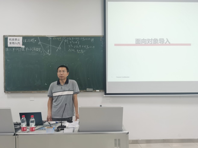 7月6日,第一次课程,企业专家和相关负责老师很早就到达授课教室,即西电南校区计算机基础实验教学中心的EIII207机房,检查实验环境和教学环境,保证课程能够顺利实施。下午两点,课程正式开始,万波教授首先介绍了参与本门课程授课的四位华为资深软件专家,并代表公司表示欢迎和感谢,之后阐明了该课程开设的重要意义,最后鼓励所有选课员工在未来两周认真学习,必能有所收获。