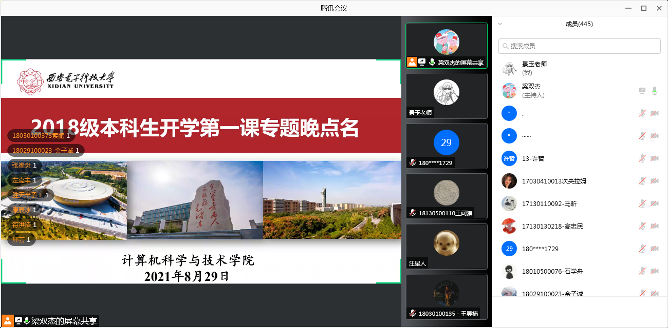 (通讯员 景玉 张力月)2021年8月29日下午,永利yl23411面向2018级本科生开展了线上“开学第一课”专题晚点名活动。三位本科生辅导员围绕疫情防控、安全教育、升学深造、就业择业等多个方面向同学们介绍了本学期的重点工作任务,引导同学们早知道、早准备、早规划。