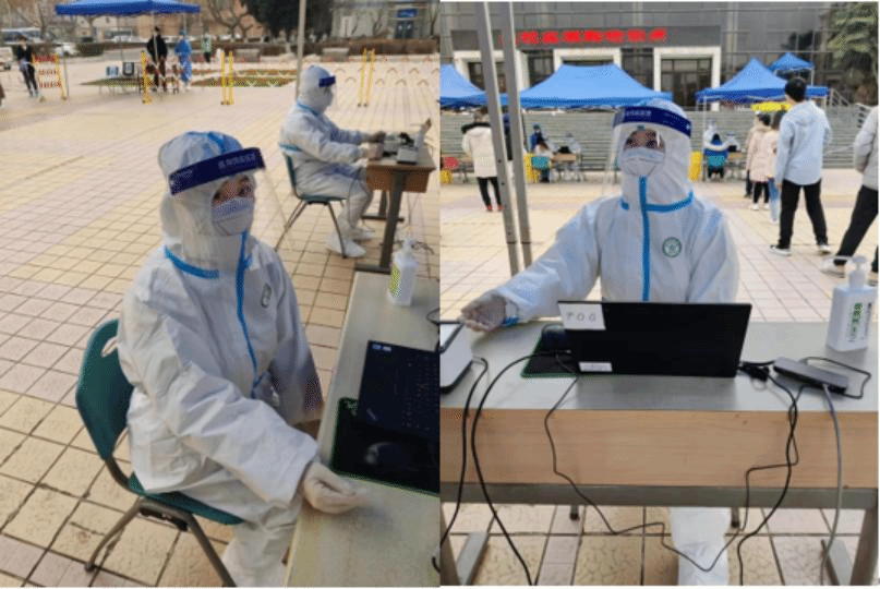 到达志愿者集合点后,医生对志愿者同学进行培训,马芷璇告诉我们:她的工作是辅助同学们扫码、检查同学们扫码后信息是否成功录入系统、未录入的话提醒同学们重新扫码、手动录入身份证信息。主要的检测工作都是医护人员在做,他们做的才是最辛苦最危险的工作。