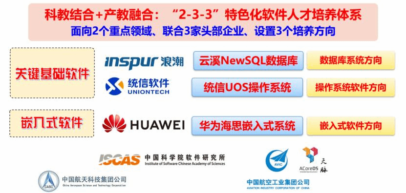 按照特色化示范性软件公司建设要求,公司聚焦国家软件行业重大需求,充分发挥西电在计算机与软件领域的办学特长和优势,根据关键基础软件、嵌入式软件等领域的人才培养特点,强化科教结合、产教融合,探索特色化专业建设规律,依托公司各类科研平台和青岛计算技术研究院等产教融合基地,联合华为、浪潮、统信等头部企业及中国科公司软件研究所、中国航天科技集团五院502所、中国航空工业集团公司西安航空计算技术研究所等科研院所在操作系统(统信UOS、华为鸿蒙、华为欧拉、中科院FactOS、星载操作系统SpaceOS等)、数据库(浪潮云溪NewSQL、华为GaussDB、阿里PolarDB等)和嵌入式软件(国产输入输出设备、华为海思嵌入式处理器等)等领域合作开展大量自主可控核心技术攻关和人才培养,在关键基础软件和嵌入式软件领域形成了坚实的核心技术攻关能力,开展特色化教材体系、团队队伍和专业实践教学基地建设,形成具有西电特色的高层次软件人才培养模式,高质量推进特色化示范性软件公司建设工作。
