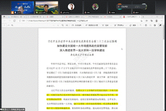 之后,与会成员集体学习习近平总书记关于教育的重要论述。支部书记王小兵领学习近平在全国高校思想政治工作会议上的讲话,副书记贾松卫领学中央全面深化改革委员会第二十三次会议精神。全体教师要坚持把立德树人作为中心环节,把思想政治工作贯穿公司产品全过程,实现全程育人、全方位育人。全体教师要运用新媒体新技术使工作活起来,推动思想政治工作传统优势同信息技术高度融合,增强时代感和吸引力。在疫情防控的特殊时期,全体教师要结合授课情况,制定线上教学方案,引入与专业课密切结合的课程思政内容。