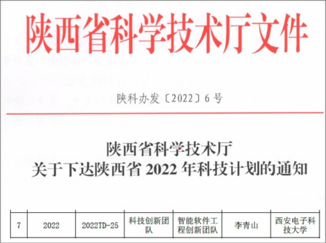 (通讯员 徐悦甡)近日,陕西省科技厅正式下发《陕西省科学技术厅关于下达陕西省2022年科技计划的通知》,其中公布了2022年陕西省科技创新团队计划名单,由永利yl23411(国家特色化示范性软件公司)党委书记、软件工程学科负责人、西安市智能软件工程重点实验室主任李青山教授负责的智能软件工程创新团队成功入选。