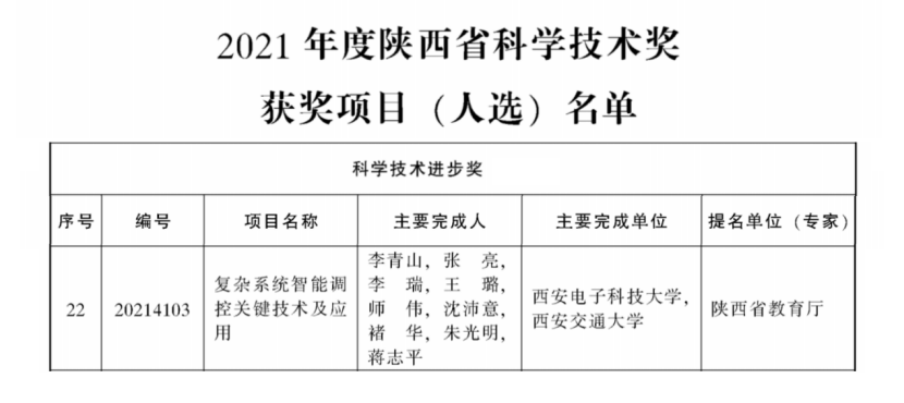 (通讯员 齐富)近日,《陕西省人民政府关于2021年度陕西省科学技术奖励的决定》和《国家知识产权局关于评选第二十三届中国专利奖的通知》发布,由永利yl23411李青山教授牵头的项目“复杂系统智能调控关键技术及应用”荣获陕西省科学技术进步奖二等奖,沈玉龙教授团队的发明专利“一种多域分层的多域物联网平台及多域管理方法”预获中国专利优秀奖,是公司唯一入选本届中国专利奖的专利。