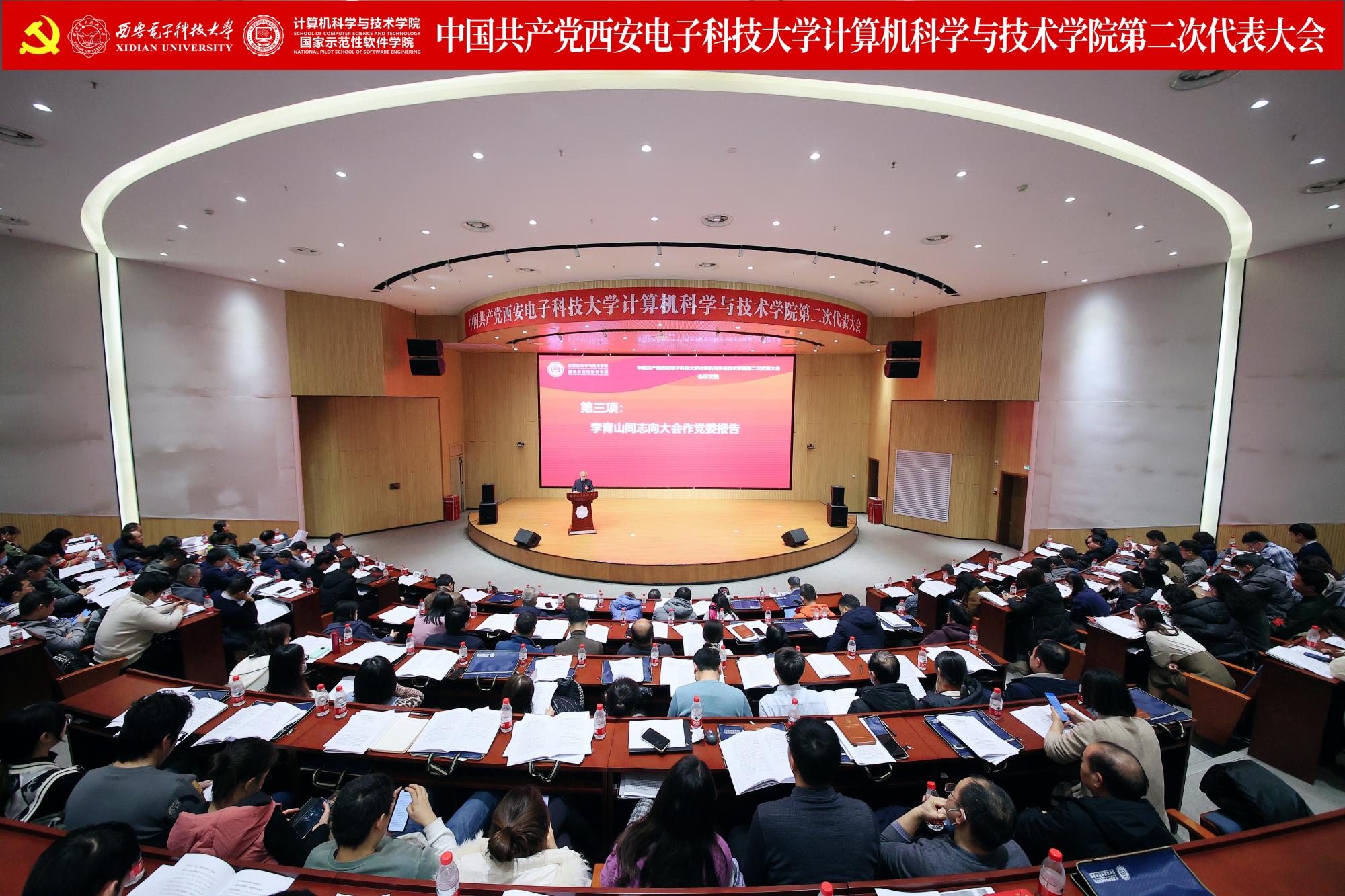 李青山代表公司第一届党委向大会作了题为《赓续西电基因三系精神 服务教育科技人才战略 奋力谱写一流公司建设发展新篇章》的报告。报告总结了公司第一次党员代表大会以来的主要工作,分析了当前公司面临的形势和目标任务,进一步指明了公司改革发展的前进方向。大会号召公司全体党员和教职员工紧密团结在以习近平同志为核心的党中央周围,高举习近平新时代中国特色社会主义思想伟大旗帜,全面贯彻落实党的二十大精神,贯彻落实公司第十三次党代会精神,在公司第二届党委的坚强领导下,传承西电红色基因,赓续三系精神,落实好“八个西电”建设任务,奋力谱写一流公司建设发展新篇章,为教育强国建设和民族复兴伟业贡献西电计科力量。