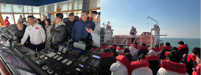 本次活动由五所高校联学共建,是一次充满“海味”的爱国主义海上流动“红色学堂”。西电永利yl23411与中国海洋大学、山东大学、山东科技大学、中国石油大学(华东)等高校共110名师生共同登上“东方红3”科考船,现场学习《海洋科考认知实践》公共选修课。
