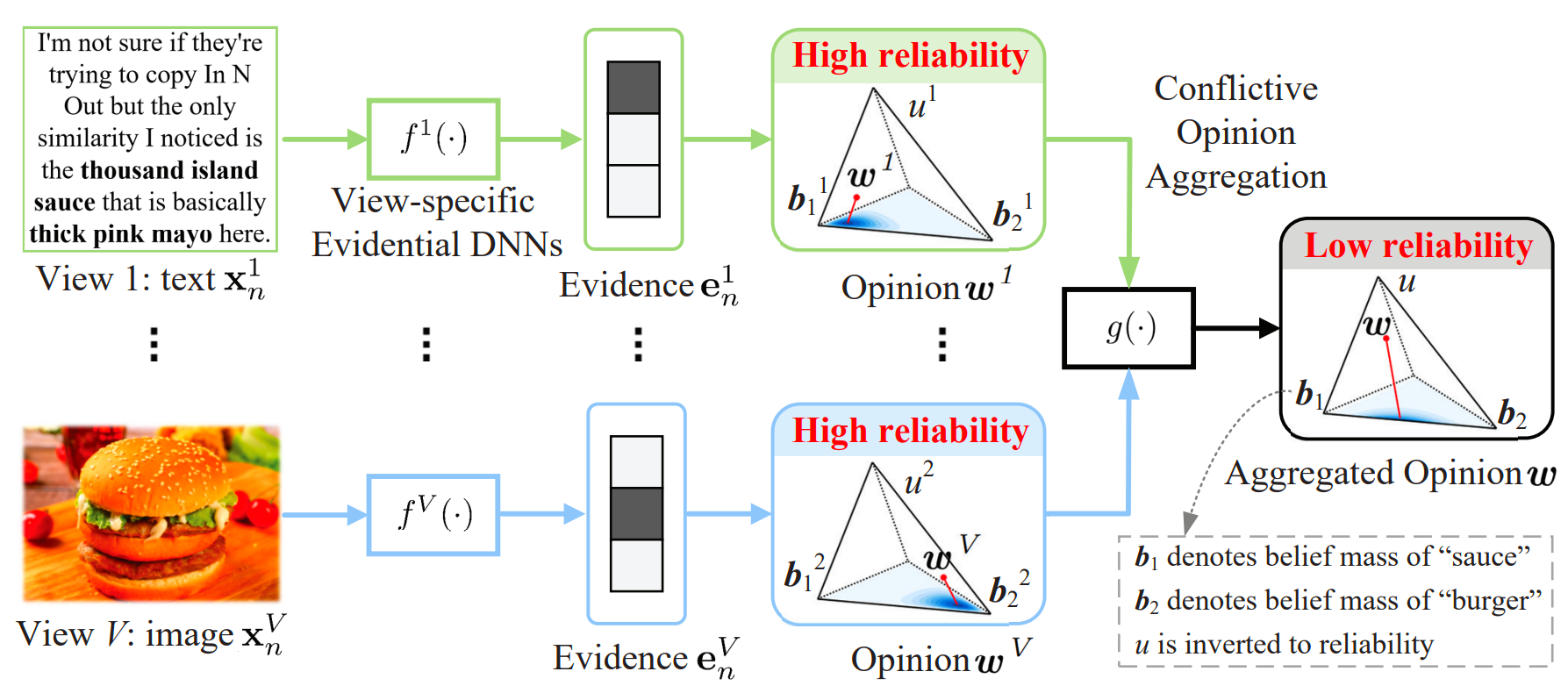 本研究提出了一种新颖的多模态证据深度学习方法(Evidential Conflictive Multi-view Learning, ECML),通过可信地聚合冲突多模态数据,能够在提升决策性能的同时,可靠地度量决策置信度,并从理论上证明了ECML能够量化冲突模态带来的负面影响。在多个公开数据集上的实验结果表明,ECML显著地提升了决策性能和可靠性。该方法适用于主流的多模态分类模型,实现了多模态信息的“去伪存真”,使得多模态模型可以“兼听则明”,在医疗辅助诊断、自动驾驶等多种实际复杂场景中具有很好的应用前景。