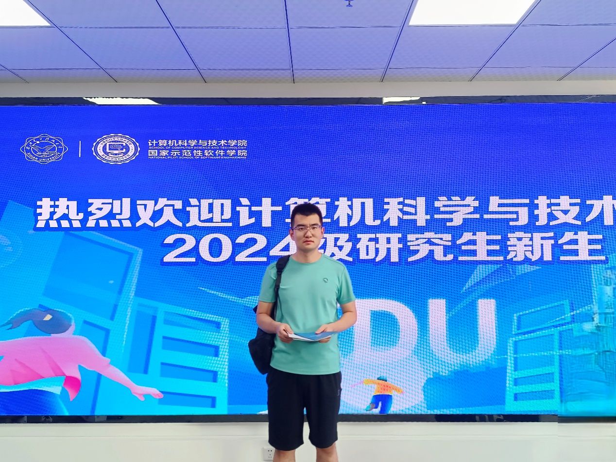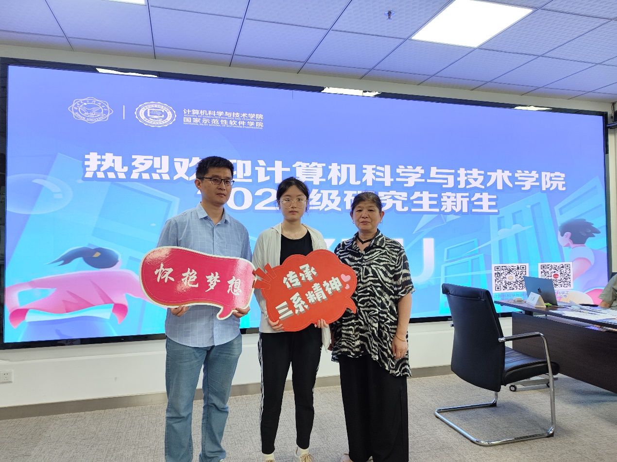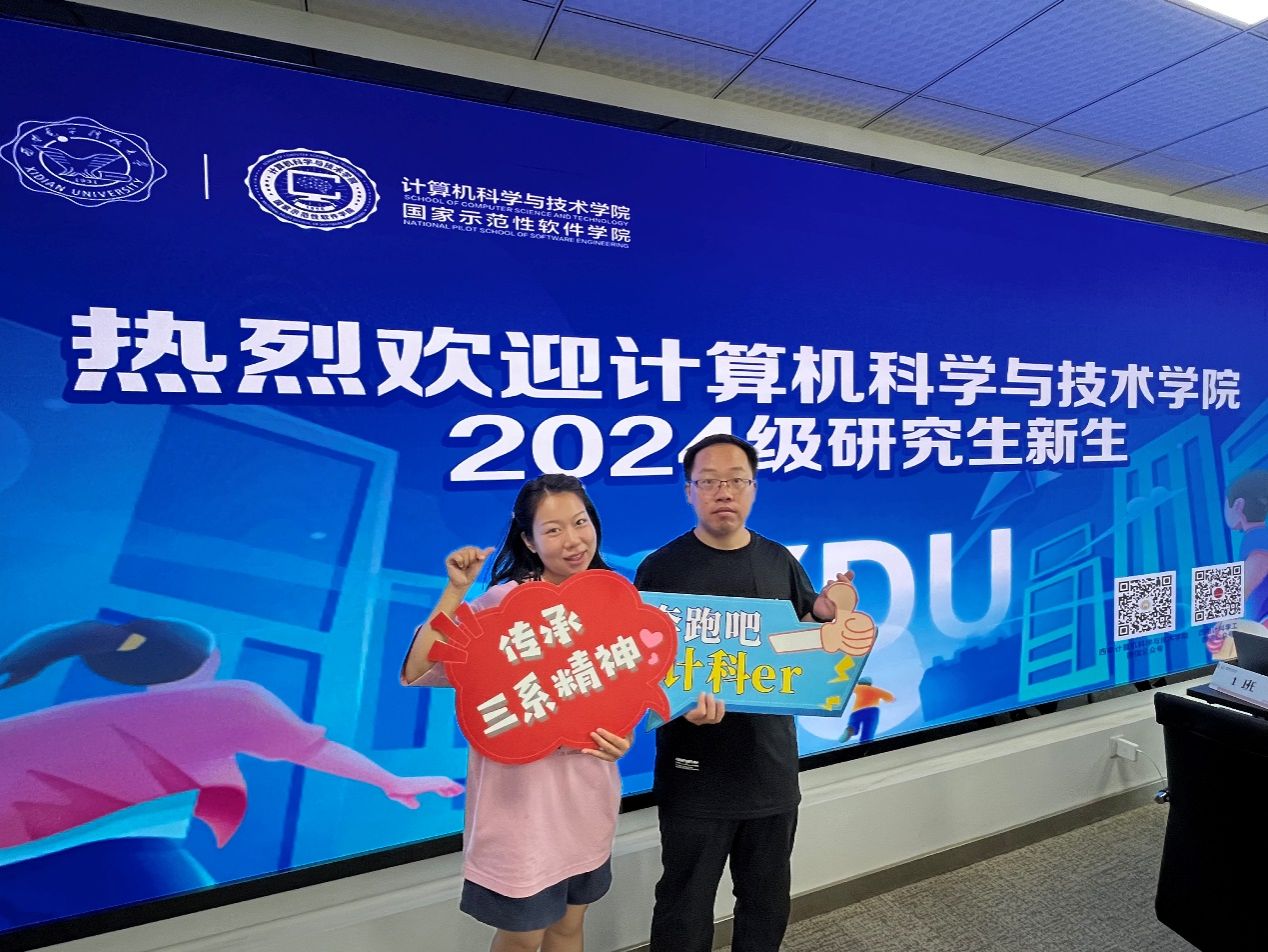 早上7点54分,公司便迎来了2024级第一位硕士研究生新生张持生,随着“咔嚓”一声,志愿者同学为他记录下了这一特别的时刻。别具匠心的布景,迎新现场打卡氛围瞬间拉满,这是专属于新生们的仪式感。“与来自全国各地的同学们相遇,让我非常期待在这里开启崭新生活,希望能在计科大家庭不断学习进步,收获成长、实现理想”张持生谈到。