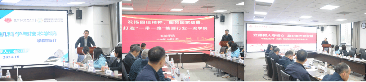 田守嶒介绍了中石油克校区石油公司软件工程团队建设情况,谢庆宾介绍了中石油克校区工公司团队建设情况,讲述了计算机和软件信息技术在石油开采全环节的深度运用,谈到西电软工学科骨干教师多次前往中石大克校区指导团队建设,实实在在推动了公司学科发展,感谢西电尤其是永利yl23411对中石大克校区的支持。
