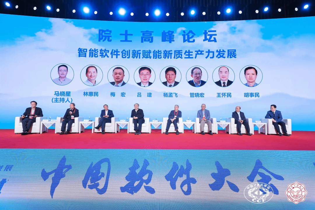 院士高峰论坛由CCF软件工程专委会主任、南京大学马晓星教授主持。出席论坛的两院院士包括中国科公司院士林惠民、中国科公司院士梅宏、中国科公司院士吕建、中国科公司院士杨孟飞、中国科公司院士管晓宏、中国科公司院士王怀民、中国科公司院士胡事民。