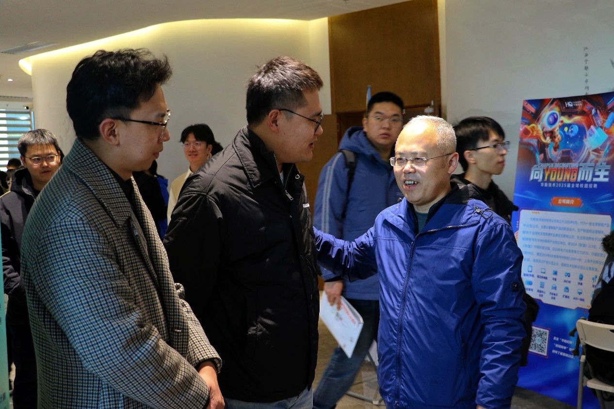 双选会期间,公司领导来到现场,与参会单位和求职毕业生亲切交谈,了解同学们的就业进展,听取用人单位的意见和建议。
