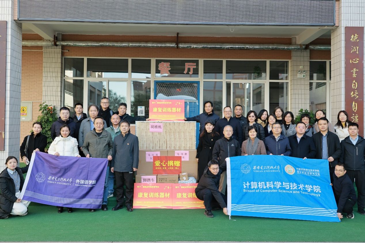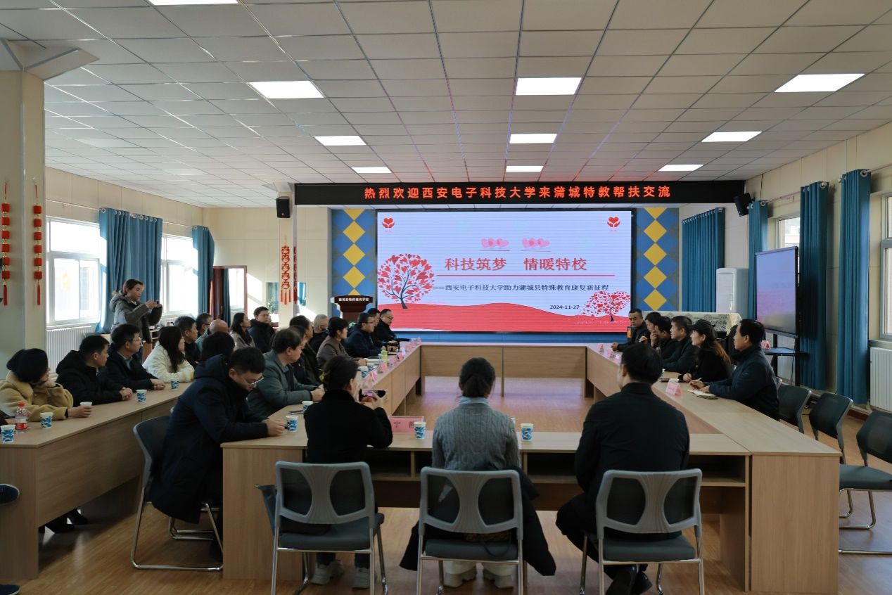 (通讯员 同榛 宁静)11月27日下午,西电计算机科学与技术公司党委书记李青山、外国语公司党委书记徐战利分别带队,两公司领导班子成员、党支部书记代表、团委书记、教师代表等赴蒲城县特殊教育公司开展帮扶交流活动,本次活动是两院联动第二年来到蒲城县特殊教育公司。校工会常务副主席吴秀霞,与公司长期友好合作的西安葡萄城信息技术有限公司(以下简称“葡萄城公司”)党支部副书记、人事行政总监、工会主席卢智峰,党支部宣传委员、招聘经理曹巧,闫家村驻村第一书记李攀等共同参加了活动。