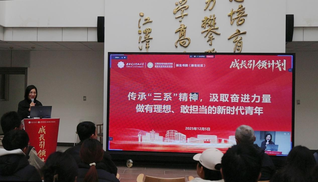 计算机类2025级新生解诗语同学现场参与活动之后深有感触,“李青山老师对‘三系’精神形成过程透彻的讲解,让原本不太了解院系历史的我不仅熟知了西电计算机专业悠久的发展历史和雄厚的实力,更是对胸怀祖国、科学求实、敢为人先、追求卓越的‘三系’精神有了更深刻的认识,我作为一名计算机类的员工深感自豪。另外,他还特别关心我们大一的员工,向我们提出了很多有用的建议,比如要从高中的学习模式向大学的学习模式转换过来,多和学长学姐们交流。我深受启发与鼓舞,前行的方向更加明晰。我将以‘严谨、担当、勤勉、开放’的院训为引领,砥砺前行,争做有理想、敢担当的新时代青年。”