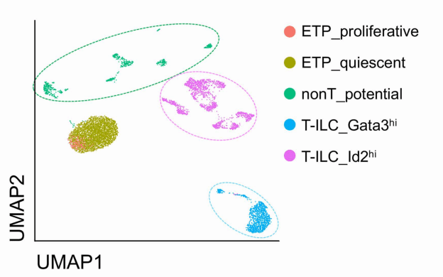 利用下一代测序技术与空间转录组技术,获取基因多组学数据分析,通过开发生物信息工具,对肿瘤基因多组学数据进行智能挖掘,发现患者样本中存在高表达Tcf1的静息态亚群和低表达 Tcf1的增殖态亚群。为探究Tcf1在ETPs产生中的作用,借助体外OP9-DL1基质细胞共培养系统,发现高表达Tcf1的静息亚群具有更强的T细胞谱系偏向性和更快的分化速率。综合分析差异表达基因、染色质开放性差异位点及Tcf1染色质结合位点,发现Tcf1可结合ETPs特异性基因并维持其染色质开放状态,从而保持基因高表达。反之,其会抑制非 T 谱系基因的染色质开放,使基因沉默。该研究明确了Tcf1/Lef1在ETPs形成与功能维护的作用,为白血病等复杂疾病的精确诊疗治疗提供了理论基础。