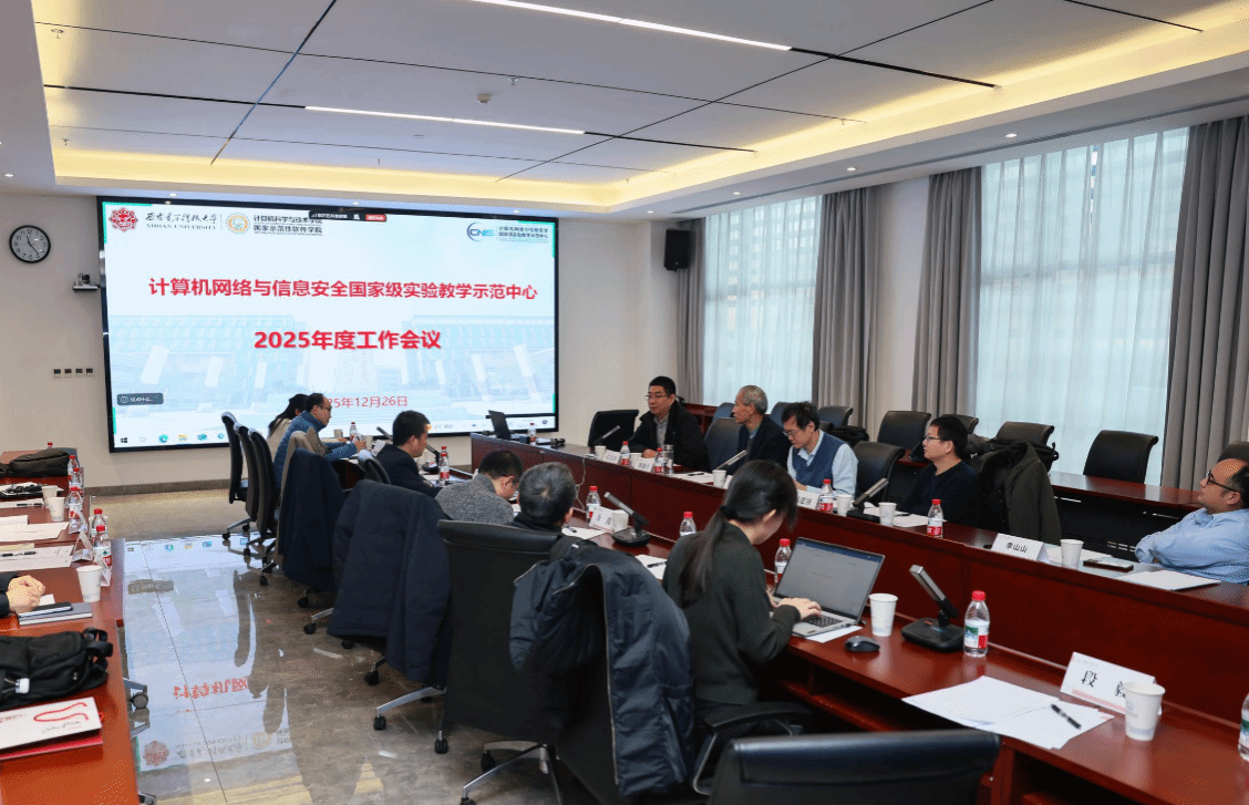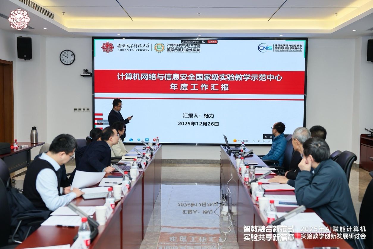 12月26日上午,“计算机网络与信息安全国家级实验教学示范中心2025年度工作会议”在南校区会议中心A121会议室举行。国家级教学名师、西安交通大学桂小林教授,国家级教学名师、陕西师范大学傅钢善教授,西北大学信息科学与技术公司副经理冯筠教授、实验中心主任杨建锋高级工程师,华为高校系统部鲁月华主任,西电教务处副处长兼教师教学发展中心办公室主任杨明磊,电子工程公司副经理任爱锋,永利yl23411副经理万波、本科教学办公室主任张亚菲及实验教学中心教师代表,共计20余人参加会议。会议由公司副经理兼国家级实验教学中心主任杨力主持。