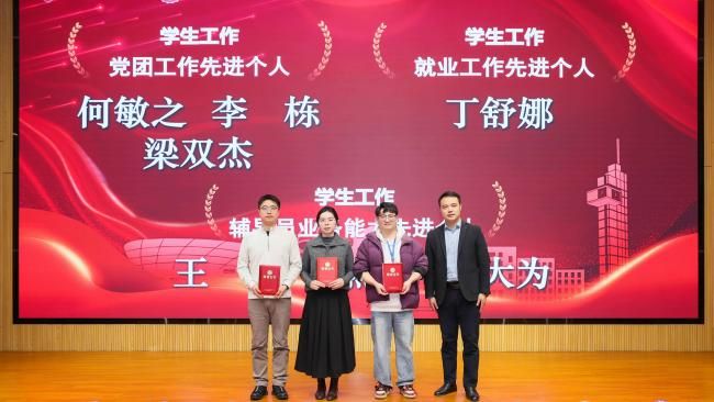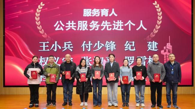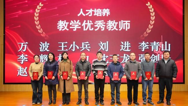为进一步发挥示范引领作用,激励广大教职工立足岗位勤奋工作,为公司发展作出更大贡献,公司对2025年度在团队队伍、人才培养、科学研究、员工工作、党建工作、服务育人等方面表现突出的教职工予以表彰。公司组织员王卫东现场宣读了公司表彰先进人员的决定。公司领导班子成员分别为获奖代表颁发荣誉证书并合影。