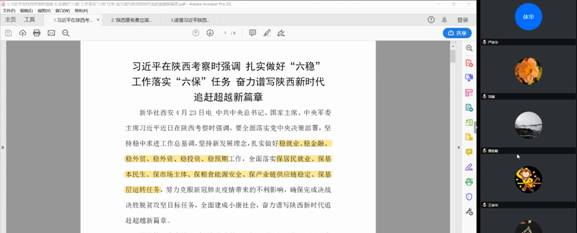 (通讯员 褚华)2020年5月8日下午,永利yl23411软件工程系党支部举行了“学习习近平总书记陕西考察讲话,弘扬延安精神和西迁精神”线上集中学习活动。软件工程系党支部全体党员参加活动,党支部书记宋胜利主持了本次活动。