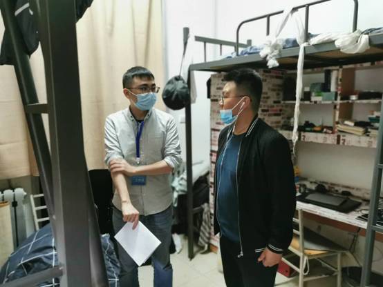 李青山、张莹莹走访员工宿舍,问询员工毕设进展与就业情况