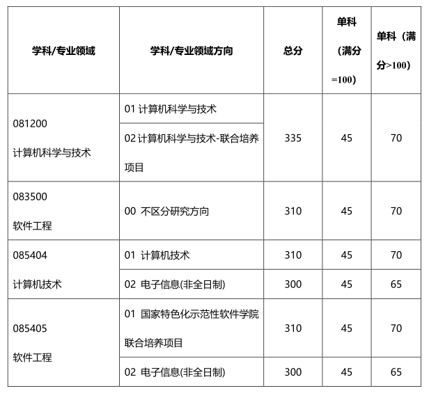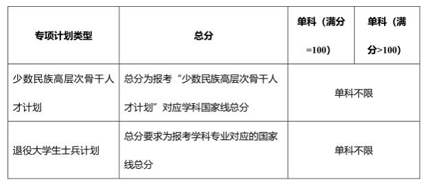 专项计划考生初试成绩满足以下条件的考生可参加复试: