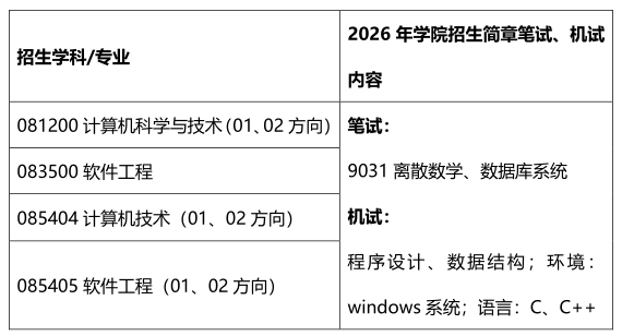 2026年硕士研究生招生复试采用现场复试形式。其中专业知识考核采用笔试+机试形式,综合能力考核采用面试形式。
