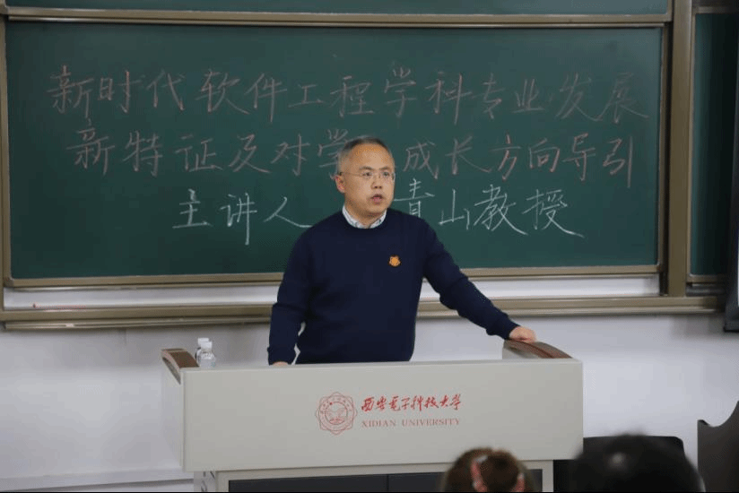李教授对公司软件工程学子的成长成才提出了建议,提出了“同频共振历史潮流时代发展,主动融入国家主流社会主律”的殷殷期许。他指出,作为西电学子,同学们首先要认清时代潮流,洞悉时代主旋律,认清行业和技术发展的趋势,紧跟时代发展大势;其次是要理清我国发展时空方位,把握个人特色优势,在时代洪流中保持头脑清醒;第三要同频国家需求,紧跟国家、产业、行业的需求,练就过硬本领,将个人发展融入到国家发展的大潮中;第四要共振社会主律,将个人价值与幸福与中国梦融为一体,做德智体美劳全面发展、堪当大任的时代青年。在报告的最后,李教授勉励各位计科学子珍惜时光,珍惜时代和国家给予的机会,掌握知识、增强本领,提升自我,将个人发展与时代、民族、国家的发展同频共振,实现自我价值与社会价值的有机统一。