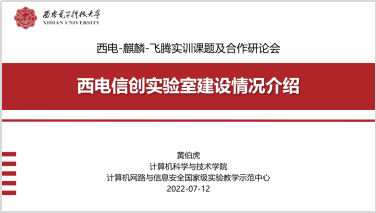 (通讯员 李翠敏)2022年7月13日下午,计算机网络与信息安全国家级实验教学示范中心(以下简称“实验中心”)与麒麟软件有限公司、飞腾信息技术有限公司线上举行了“西电-麒麟-飞腾实训课题及合作研讨会”。参加本次研讨会的有实验中心主任杨力,副主任贾文、王宗武、黄伯虎,信创实验室负责人李航,计算机工程系张剑贤副教授,麒麟软件有限公司教育发展中心胡海江总监,飞腾信息技术有限公司人才发展部任军、刘晶、李阳、王苏峰,公司相关课程任课教师及实验中心部分教师。会议由李航主持。