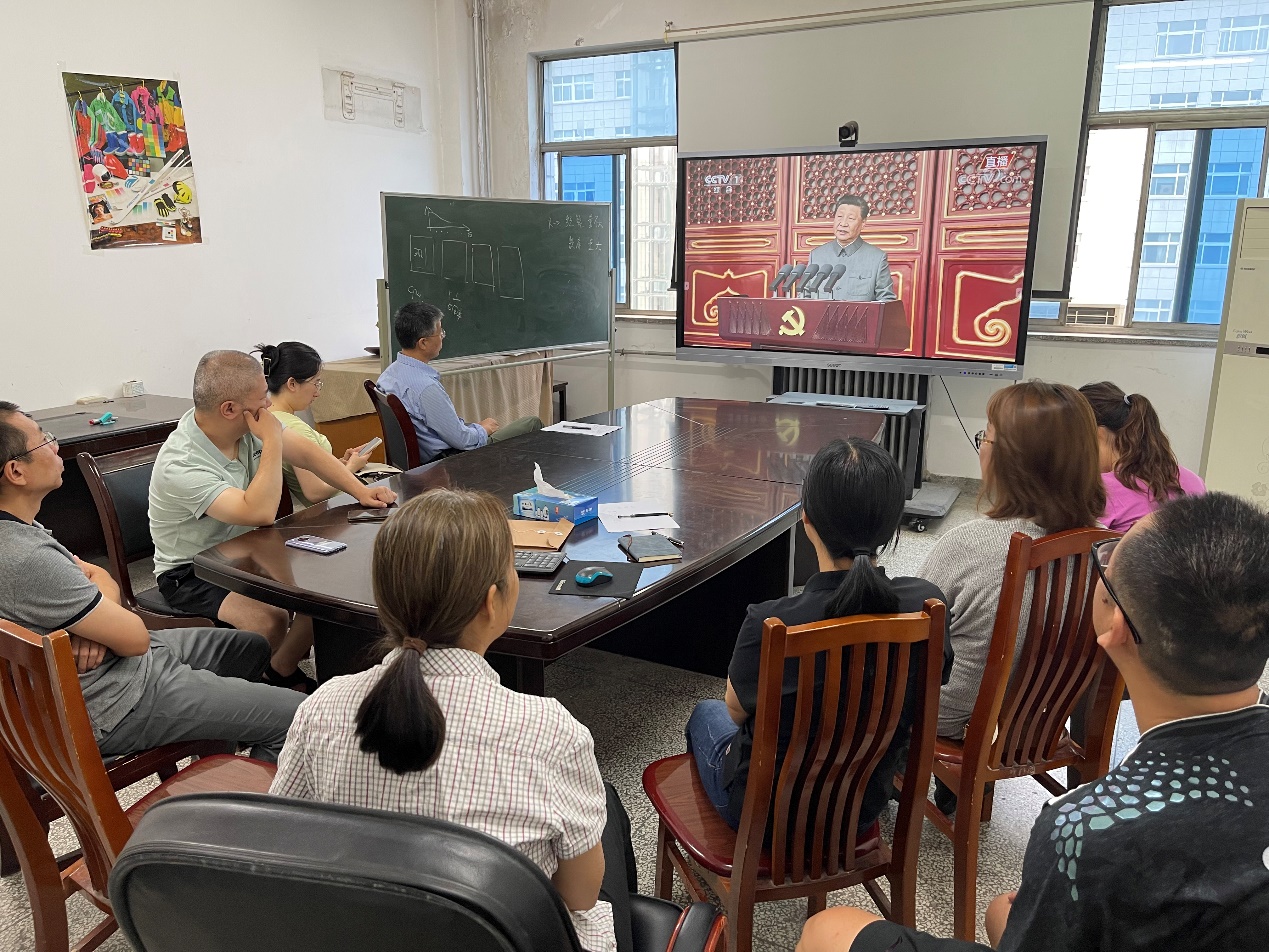 公司党委书记李青山谈到,在上午参加了公司“升国旗、唱国歌、重温入党誓词”主题教育活动后,和公司两委班子成员集体观看和学习了庆祝中国共产党成立100周年大会,聆听了习近平总书记重要讲话,对一百年来中国共产党带领中国人民开辟伟大道路、创造伟大事业、取得伟大成就倍感振奋,对“中国共产党为什么能、中国特色社会主义为什么好”有了更加深刻的认识。站在建党百年新起点,公司党政班子将坚定执行党中央号召,有力落实党中央和公司党委各项决策部署,带领公司师生自觉践行党在长期奋斗中形成的中国共产党人的精神谱系,落实立德树人根本任务,为推动一流公司建设贡献力量。
