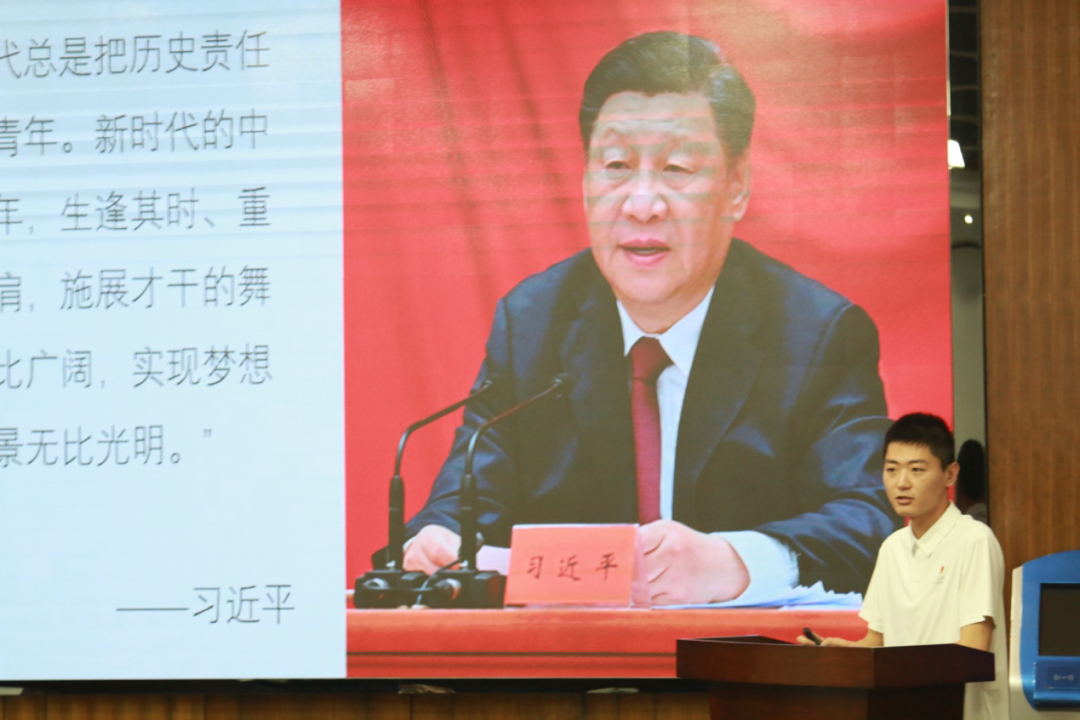 首先由来自电子工程公司的研究生曲嘉轩进行宣讲,他从李大钊先生的《青春》出发,讲述了近代青年在党的领导下对中国革命和国家建设做出的巨大贡献,指出了习近平总书记对中国青年的肯定与厚望。后又结合西安发生新冠疫情的所见所想与自身志愿服务经历,鼓舞大家继续砥砺奋进、发光发热,不愧对习近平总书记的殷殷嘱托、不愧对党和人民,为中华民族的发展和祖国建设做出自己的贡献。