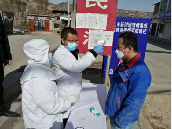 子长市南沟岔镇的基层干部在检查来往人员