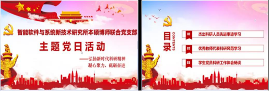 2020年3月27日下午,智能软件与系统新技术研究所本硕博师联合党支部开展了主题为“弘扬新时代科研精神”的线上主题党日活动。本次活动邀请了计算机科学与技术公司党委书记、智能软件与系统新技术研究所所长李青山老师,软件工程系主任、软件工程系党支部书记宋胜利老师,以及产教协同基地本硕博师第一联合党支部书记、智能软件与系统新技术研究所副所长李瑞老师参加。活动由支部书记王璐老师主持。