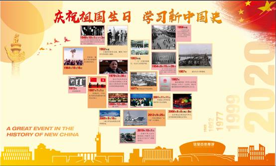 同学们举着我爱你中国”“祖国,我为你自豪”“我和我的祖国一刻也不能分割”的字牌,在新中国史大事记主题展板前纷纷合影留念,表达青年学子热爱祖国的赤子之心和对祖国母亲的美好祝福。