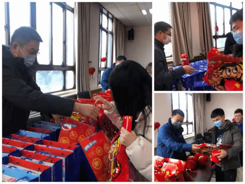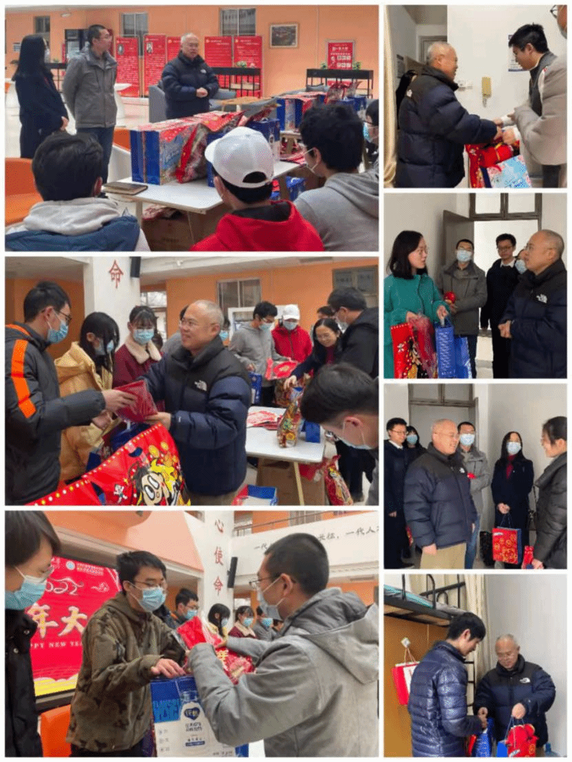 李青山一行先后来到丁香15号楼、海棠7号楼、竹园2号楼,走进员工宿舍,走访慰问留校各年级本科生和研究生同学,为同学们送上新春祝福和新春礼包,关心地问起同学们宿舍供暖、日常学习生活等情况。大四的李思哲同学来自甘肃敦煌,因家乡疫情防控需要选择在校就地过年时。他表示今年虽然不能回家,但是能够感受到来自公司和公司满满的关怀和祝福,希望在公司能够抓住时机好好学习,顺利完成毕设,给老员工活画上一个圆满的句号。梁逸同学来自广西,他说:“感觉公司公司特别暖心。即便不回家,我们也能在公司感受到过年的气氛,家人知道后,也很放心!”20级软工卓越班同学韩香云说道:“非常感谢公司,特意为我们准备了酸奶、饼干、零食大礼包,还有福虎公仔和糖葫芦,真的太贴心了!”