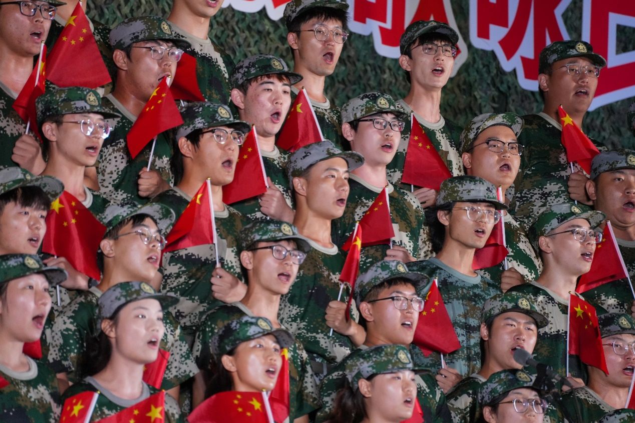 这来之不易的宝贵成果并非一朝一夕所就,而是由五团合唱团的努力共同浇灌而成。自晚训的第一次排练开始,五团合唱团在公司文工团的指导和辅导员的陪伴下刻苦练习,不断精进。在反复的练习之中,五团合唱团不仅提升了演唱水平,也增强了团队的凝聚力和向心力,更加增强了同学们的团队意识和荣誉感,让大家在这次宝贵的军训体验中收获更多认同与情谊。
