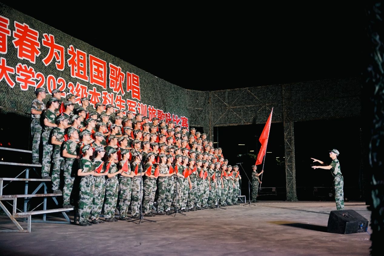 (通讯员 叶若兰 王薇)丹桂飘香,秋风送爽,青春正好,军歌悠扬。9月4日晚,2023级本科生军训旅歌咏比赛在南校区南操场拉开帷幕。2023级军训旅歌咏比赛以“青春为祖国献唱”为主题,将青春豪情融入歌曲,让爱国热忱渗透旋律,旨在传承弘扬爱国主义精神,展现西电青年踔厉前行、报效祖国的拳拳之心。永利yl23411在此次歌咏比赛中,以《通信工程公司校歌》《人民军队忠于党》两首歌曲的精彩演绎斩获总分第2名的优异成绩!