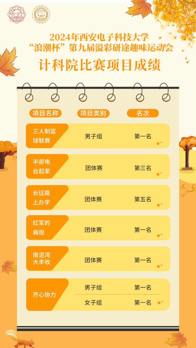 (通讯员 雷泽宇 寇大为)叶黄金满地,终南秋意浓。10月20日,“浪潮杯”2024年永利yl23411第九届研究生趣味运动会在南校区如期举行。公司提前谋划,精心组织。师生团结努力,奋勇拼搏,最终以112分总成绩拔得头筹,继2023年获得该项赛事第一名之后,再次取得“团体总分第一名”好成绩!