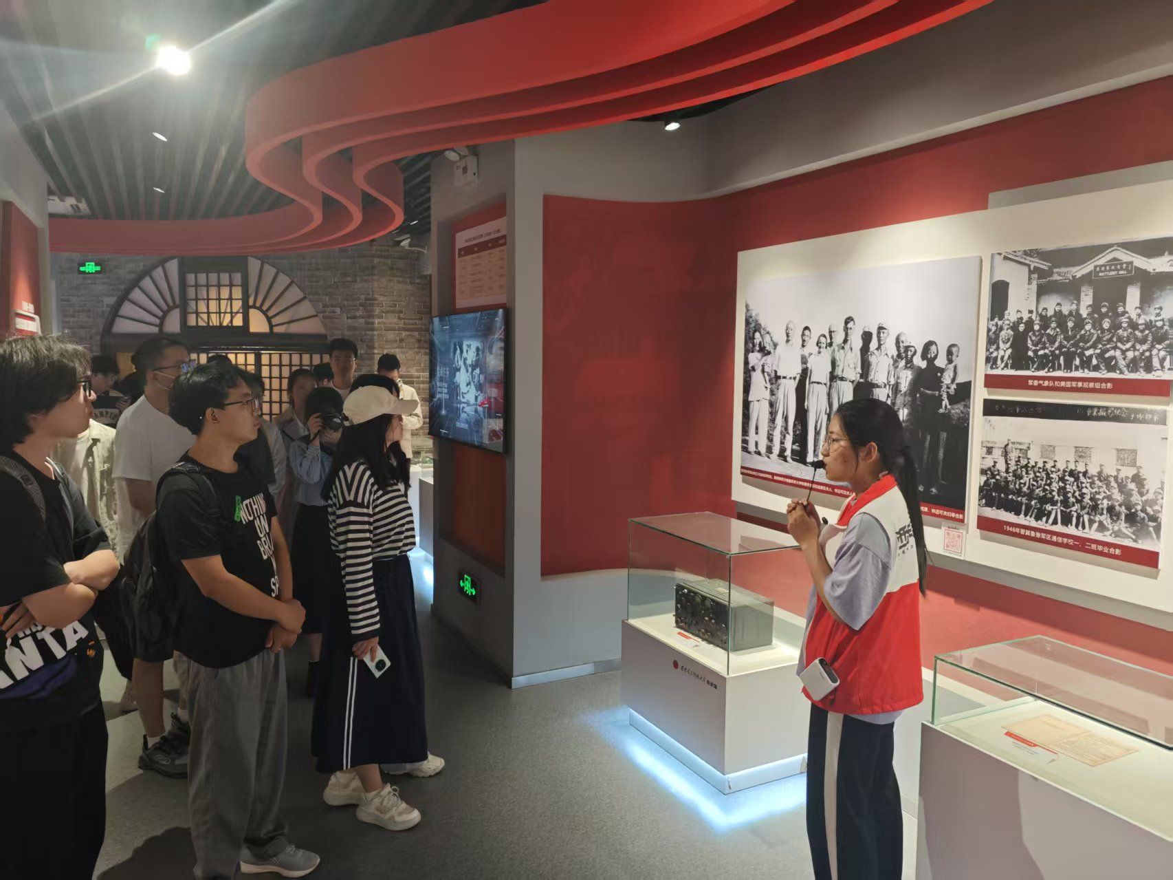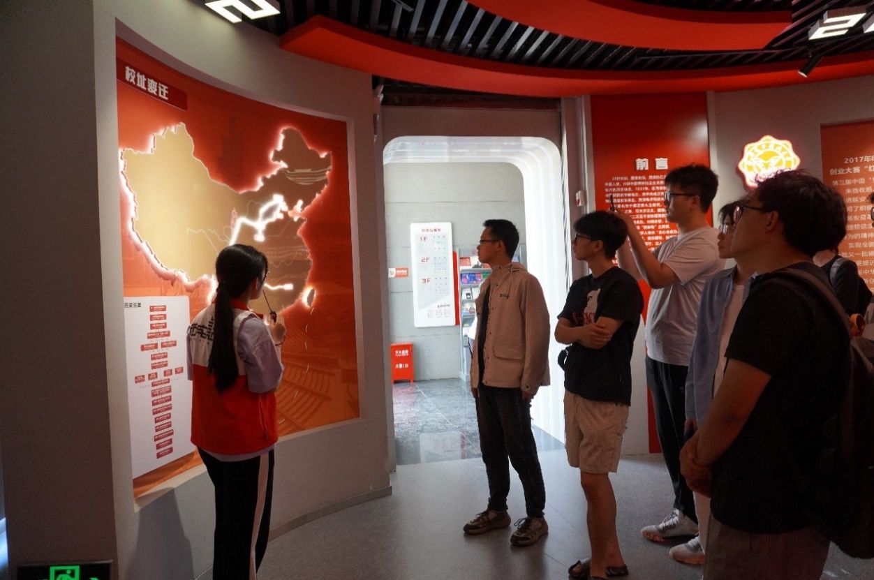 在校史馆中,讲解员以时间为脉络,通过“俯垂明训”“校史钩沉”“今日华章”三大篇章介绍了公司九十余载砥砺前行的光辉历程。驻足在一件件展品前,同学们仿佛开启了一场穿越历史的对话,深刻感受到公司的悠久历史和文化底蕴。2024级硕士研究生李豪谈到:“从半部电台起家,中央苏区诞生,长征路上办学,延安精神浸润,塞北风雪砥砺,一路走向古城西安,我深刻感受到公司深厚的红色基因,这让我更加坚定自己的理想信念,在未来的学习和生活中,我会努力拼搏,为实现‘计算报国’的目标不懈努力”。