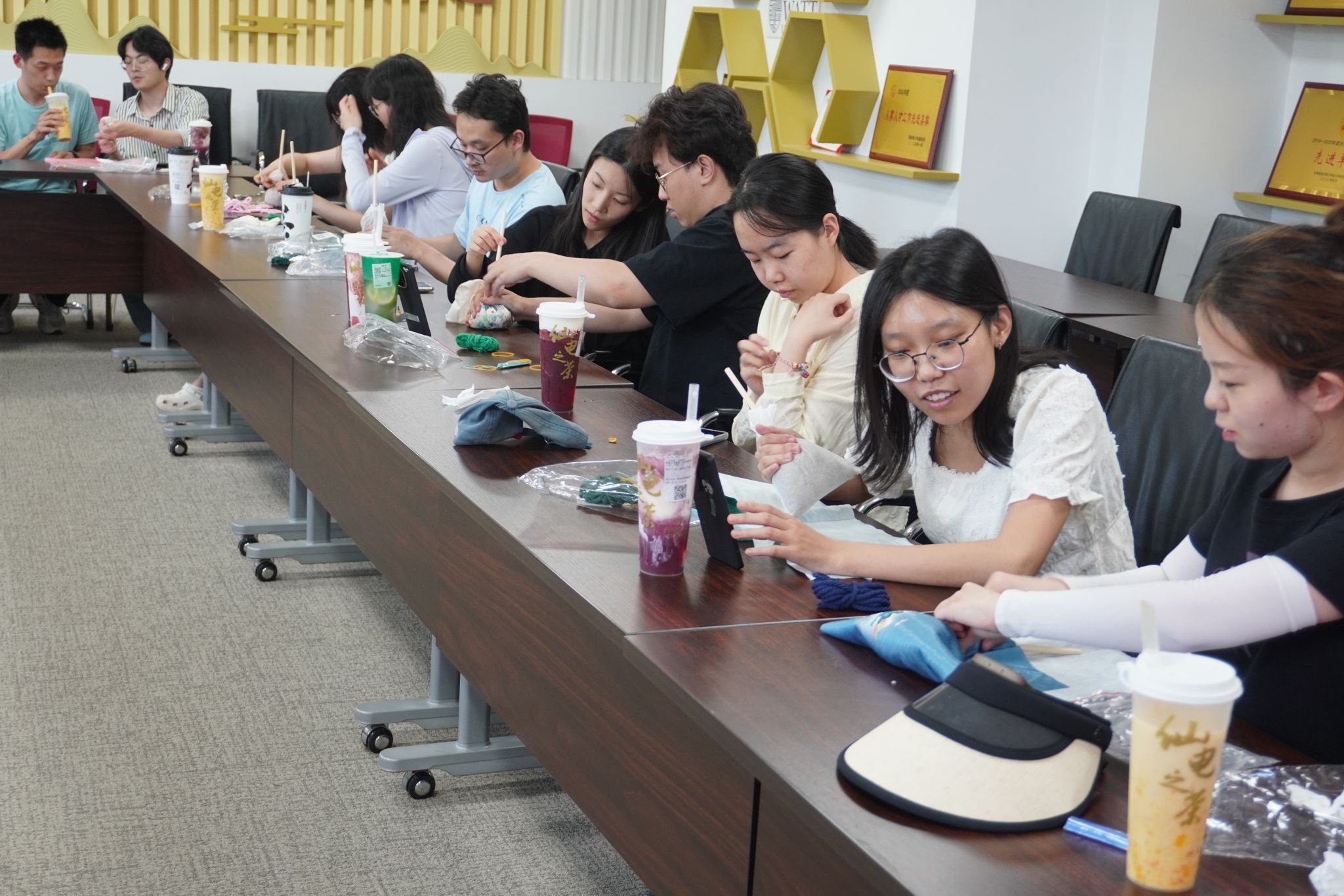 活动现场精心准备的端午艾草锤材料包、五彩绳及其挂饰,不仅是文化符号的载体,更成为心理调节的媒介。每一个艾草锤、每一根五彩绳都寄托着浓浓的端午祝福。同学们精心挑选自己喜爱的艾草锤,将艾叶层层填充其中,指尖与植物纤维的接触产生触觉安抚效应,不少员工坦言“捏揉艾叶时能明显感觉到放松”。选择五彩绳的同学则将自己喜欢的挂饰装饰在五彩绳上,将祝福寄托其中。