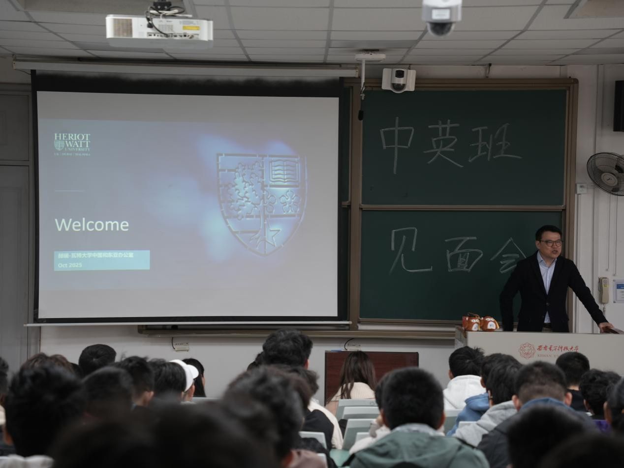 10月22日下午,王忠义老师代表英国赫瑞瓦特大学来访西电,与2025级永利yl23411中英班员工于A-527开展交流分享活动。他结合赫瑞-瓦特学习工作的亲身经历,为员工详细介绍项目特色以及英国学习生活建议。他阐述了赫瑞瓦特大学的办学概况、国际排名与学科特色,并就项目的招生要求与毕业生就业情况,并系统展示了英方涵盖安全保障、就业指导、心理咨询与医疗服务的全方位支持体系。问答环节中,他就赫瑞瓦特大学的校史及现状与员工进行互动,结合丰富的图片展示,进一步介绍公司多元的社团文化及爱丁堡深厚的历史底蕴与城市魅力,有效激发了同学们对未来英国学习生活的热情与期待。