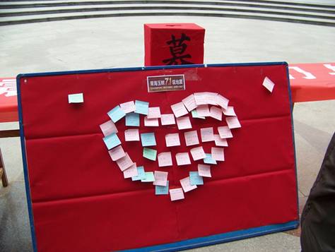 为灾区祈福的爱心墙