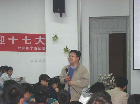 为了进一步在公司广大青年员工中深入开展学习十七大报告系列活动,11月9日下午,计算机公司在新校区D楼212开展了一次别开生面的“唱支赞歌给党听”主题演讲比赛,公司党委副书记王卫东、团委书记靳珠、辅导员王晓辉、邢薇薇出席了本次活动,此外,理公司团委书记房亮也应邀出席了本次演讲比赛,来自计算机公司的近400名员工观看了本次演讲比赛。