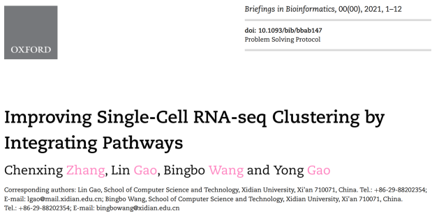 (通讯员 胡宇轩)近日,公司永利yl23411西安市计算生物信息学重点实验室高琳教授团队在单细胞组学数据模式挖掘领域发表2篇重要研究成果:团队青年教师胡宇轩(华山菁英副教授)和博士生张晨星分别以西电为第一单位在Science子刊《Science Advances》(IF=13.1,中科院一区)及领域著名期刊《Briefings in Bioinformatics》(IF=8.99,中科院一区)发表论文,这是该团队继《Nature Communications》后又一NS子刊研究成果。