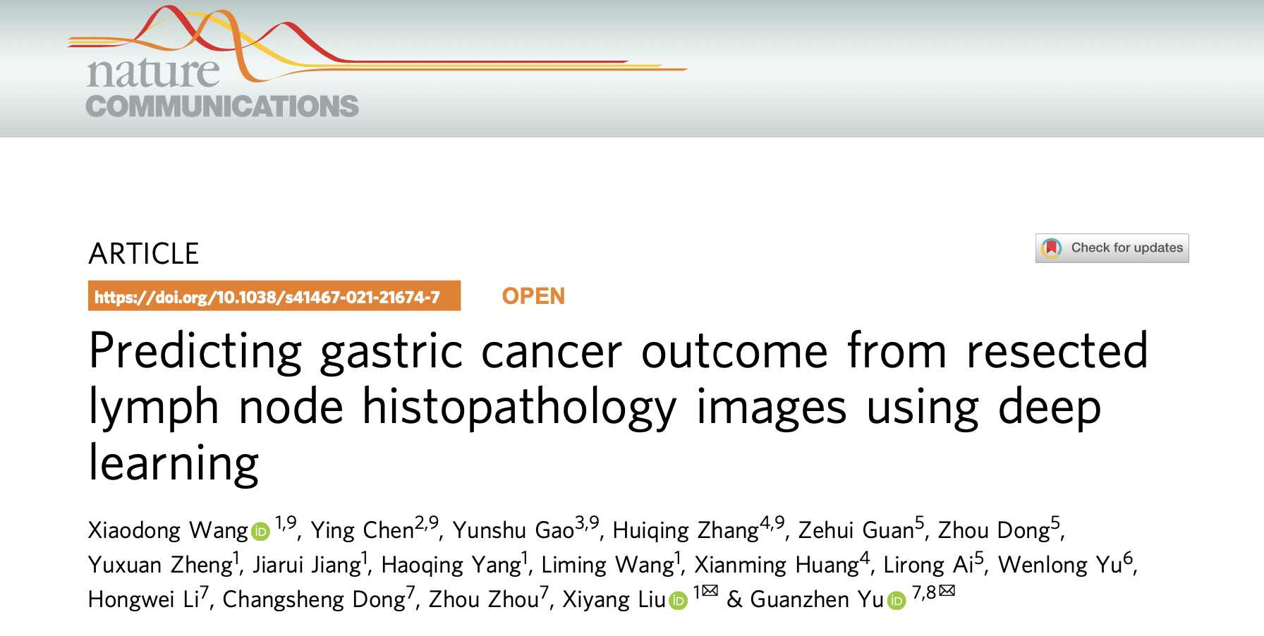 (通讯员 王晓东)公司永利yl23411软件工程研究所刘西洋教授团队,在公司“软件工程”团队建设支持下,与上海龙华医院于观贞教授、长海医院陈颖教授等团队合作,开展了胃癌淋巴结转移预后预测的AI研究,历时三年,近期以西电第一作者单位在Nature Communications (IF=12.1)发表成果“Predicting gastric cancer outcome from resected lymph node histopathology images using deep learning”,研发了针对胃癌淋巴结病理临床诊断与精准亚分期的AI系统。