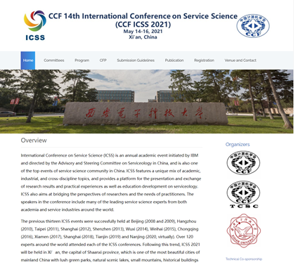 中国计算机学会第14届服务科学国际会议(CCF 14th International Conference on Service Science)将于2021年5月14日~16日在西安举行。本次会议由中国计算机学会服务计算专委会主办,永利yl23411承办。本次会议也是永利yl23411软件工程学科2021年举办的学术活动之一。