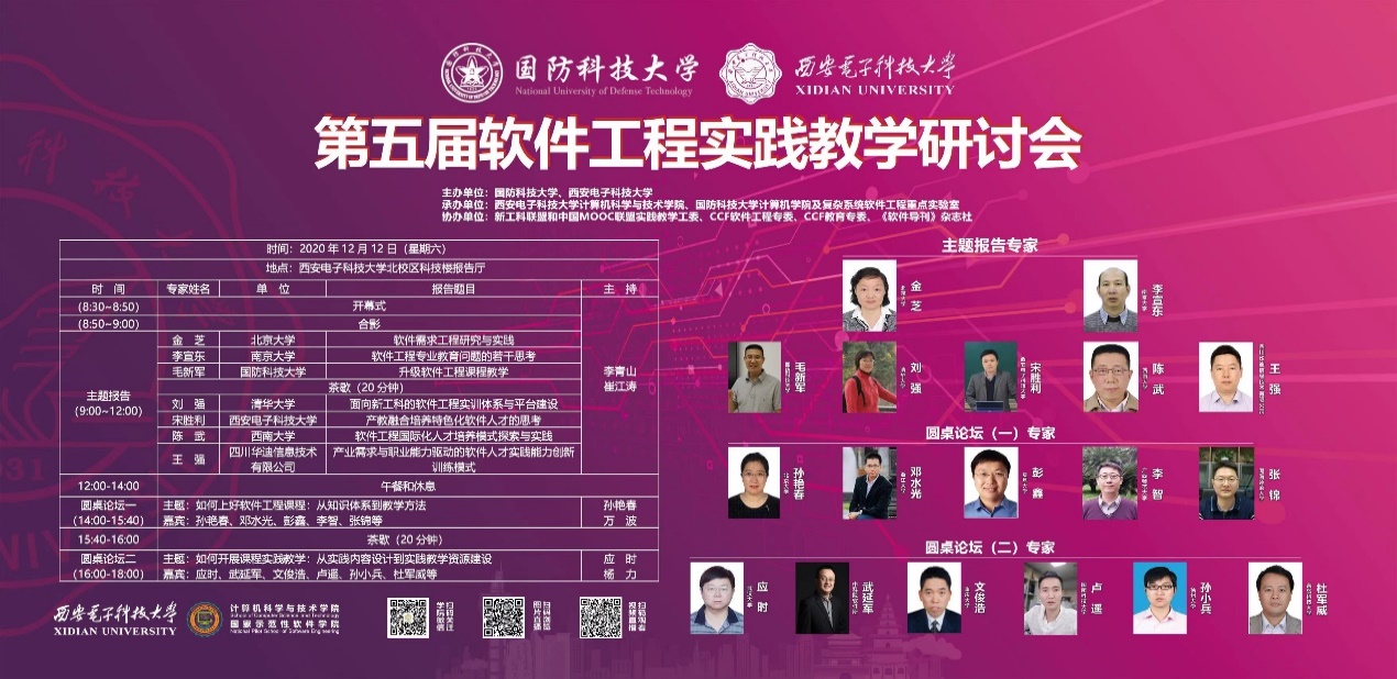 (通讯员  徐悦甡)面向新时代软件人才培养需求,进一步提高软件人才培养质量,解决软件工程专业建设和发展中的问题,2020年12月12日,在永利yl23411成功举办了第五届软件工程实践教学研讨会。本次研讨会由国防科技大学、永利yl23411主办,永利yl23411、国防科技大学计算机公司及复杂系统软件工程重点实验室联合承办,由永利yl23411计算机科学与技术公司党委书记、软件工程学科负责人李青山教授与国防科技大学复杂系统软件工程重点实验室副主任毛新军教授担任会议联合主席。