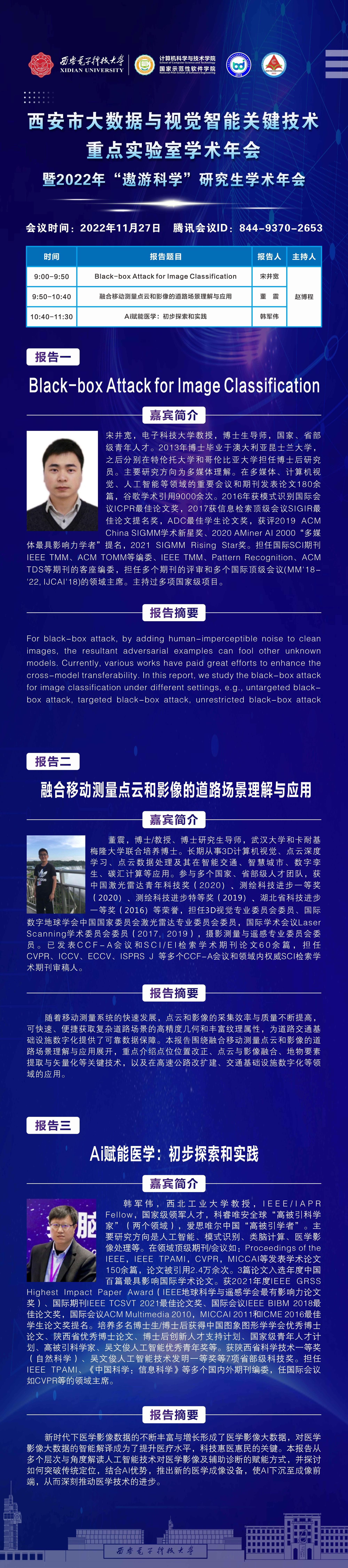 西安市大数据与视觉智能关键技术重点实验室学术年会暨2022年“遨游科学”研究生学术年会报告会预告(三)