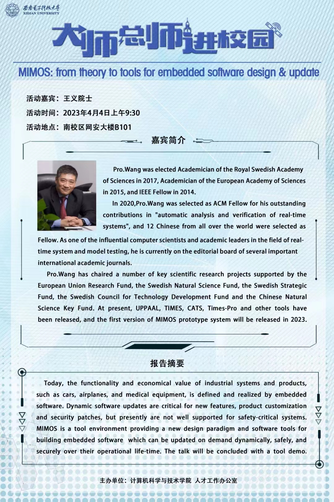 欧洲科公司院士王义4月4日上午来校讲座预告