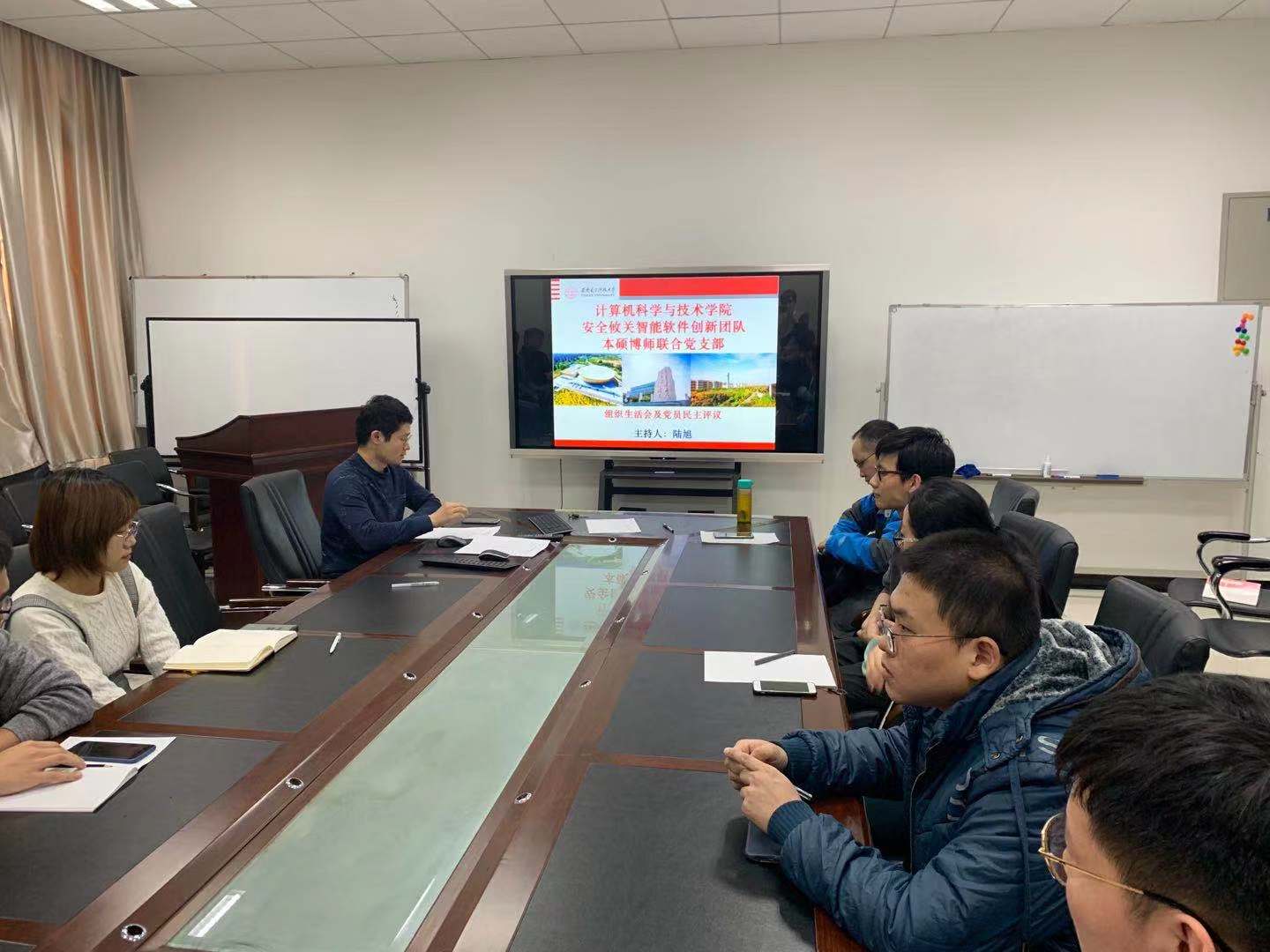 (通讯员 郭佳琦)2019年12月5日下午,为贯彻公司党委关于基层党支部组织生活会和开展民主评议党员工作部署,永利yl23411安全攸关智能软件创新团队本硕博师联合党支部在主楼四区203会议室,召开支部组织生活会并开展民主评议党员。党支部书记陆旭主持了本次会议,公司纪委委员、计算机科学系主任王小兵参加会议并进行总结发言。
