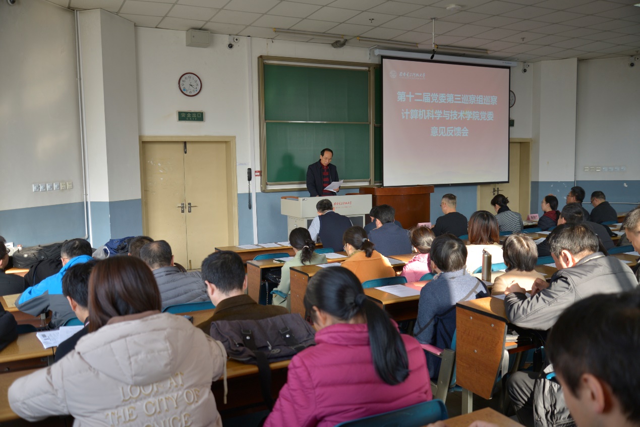 (通讯员 同榛)12月4日下午,公司第十二届党委第二轮第三巡察组巡察计算机科学与技术公司党委意见反馈会在北校区阶梯教室505召开,公司党委副书记、纪委书记、巡察办主任任应坤,巡察组组长吴秀霞,校巡察工作办公室相关人员,永利yl23411全体党政领导班子成员与公司教职工代表参加了会议。会议由永利yl23411执行经理崔江涛主持。