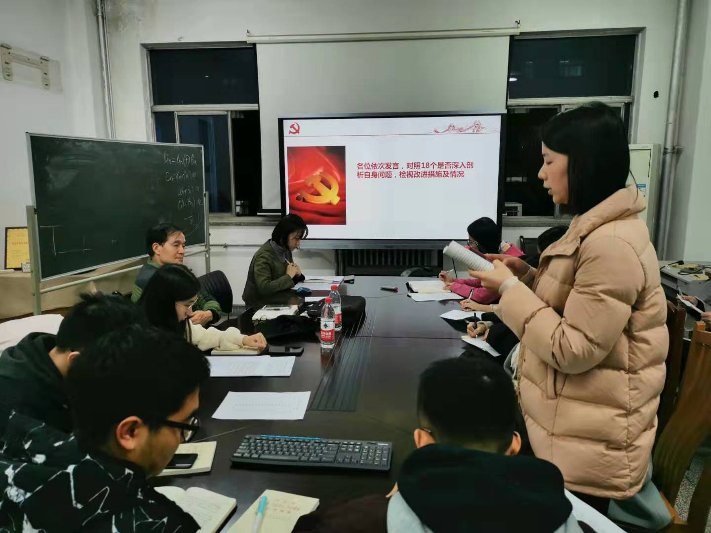 接下来,支部书记高蕾代表支部向全体党员述职,剖析了支部建设中存在主要的问题,包括支部管理制度还不规范,志愿服务活动较少,活动宣传力度不够等。问题整改措施将在之后的工作中一一落实到位。之后支部委员带头盘点参加主题教育的收获提高,查找违背初心和使命的差距不足。支部成员普遍存在政治学习不足,经常浮于表面而没有深刻体会与反思,此外作为高年级员工党员没有很好的起到党员先锋模范带头作用,服务意识差,对待科研和工作存在懈怠,放低对自我要求的现象。针对以上剖析的问题,党员们纷纷表示将在接下来的时间里不断加强政治理论和业务学习,调整好个人的状态,提高主观能动性,以更大的热情投入到科研学习和服务周围师生群众中去。