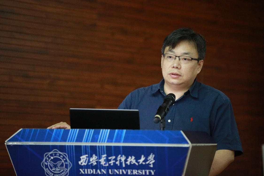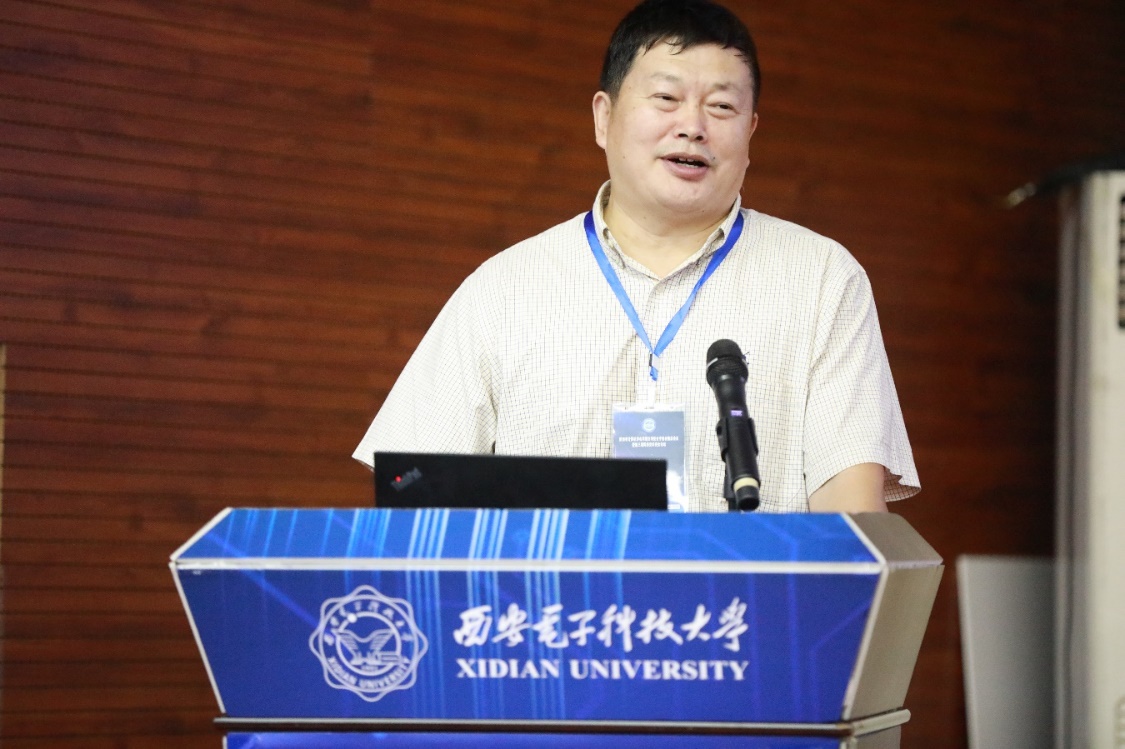 然后,由上届专委会主任马建峰教授发言。马建峰教授主要从专委会活动组织、团队建设与人才培养、社会服务三个方面对上一届专委会的工作进行了总结,他谈到我们面对新形势、新发展、新要求,要不忘初心,以提升全省和全国的网络空间安全保障能力为己任,促进成果转化,加强安全服务,扩大专委会影响力,建设网络空间安全良好新生态。